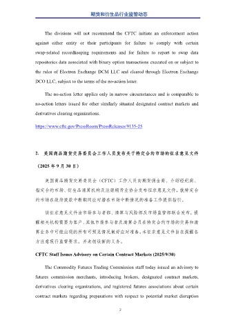 2.  美国商品期货交易委员会工作人员发布关于特定合约市场的征求意见文件