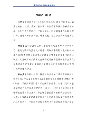 本期监管动态包含 14 条境外资讯以及 34 条境内资讯,涵