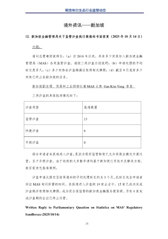 12. 新加坡金融管理局关于监管沙盒统计数据的书面答复(2025 年 10 月 14 日)