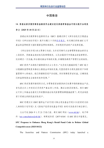 14. 香港证券及期货事务监察委员会建议优化香港零售基金守则以提升全球竞