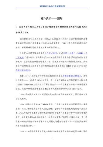 1. 国际掉期与衍生工具协会扩大沙特阿拉伯净额结算意见的适用范围(2025