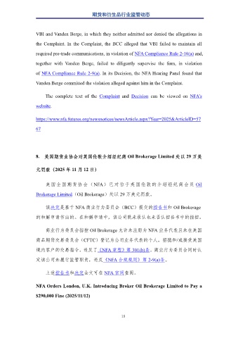 8. 美国期货业协会对英国伦敦介绍经纪商 Oil Brokerage Limited 处以 29 万美