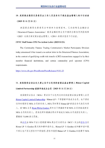 10. 美国商品期货交易委员会工作人员发布关于商品基金管理人的不行动函