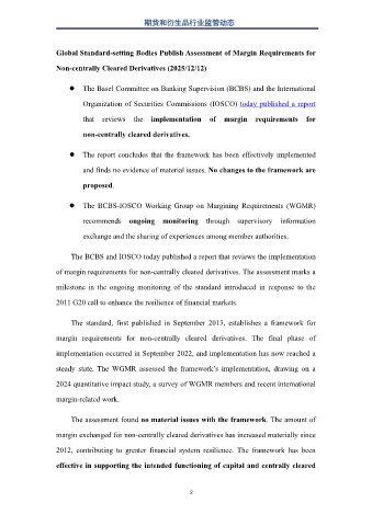 of margin requirements for non-centrally cleared derivatives. The assessment marks a