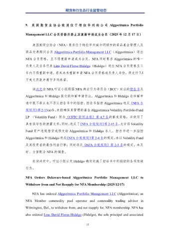 9. 美 国 期 货 业 协 会 取 消 位 于 特 拉 华 州 的 公 司 Alggoritmica Portfolio